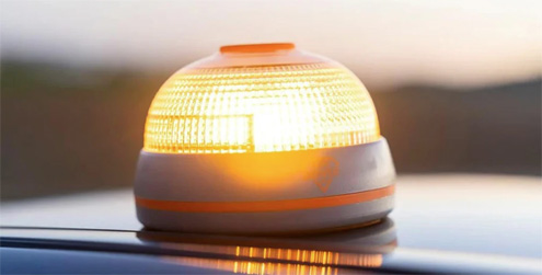 Tarde porque la conectividad de los coches ya obliga por normativa desde el año pasado a que todo modelo nuevo incorpore un botón SOS –yo lo tengo hasta en la moto- de activación manual o automática en caso de siniestro. Y de no contar con él, todos llevamos un teléfono en el bolsillo. ¿Qué has sufrido un accidente tan grave que no puedes manejar o alcanzar el móvil? Pues seguramente en ese caso, tampoco estés como para andar poniendo lucecitas luminosas en el techo de tu coche…