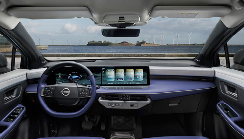 En el interior, las pantallas gemelas de 14,3" (cuadro de mandos y central) conforman un habitáculo totalmente digital, mientras que la aplicación de conectividad (NissanConnect Services) brinda acceso remoto al estado de la batería, la climatización y la planificación del viaje, lo que garantiza que el LEAF esté tan conectado fuera como dentro del propio vehículo.
