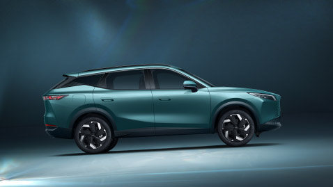 En su vista de perfil, el OMODA 7 SHS presenta una dinámica silueta crossover, con una línea de cintura ascendente muy marcada a la altura del pilar C, generando la sensación de techo flotante aportando dinamismo.