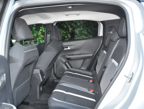 Las plazas traseras son fantásticas. Los asientos son estupendos, incluso la plaza central. El tapizado parece aguantarlo todo y el espacio es destacable. Tres pasajeros de talla normal deberían viajar sin estrecheces ni problemas de altura. Importante regular bien los reposacabezas, que en su posición plegada te quedan casi a mitad de la espalda. Pero se suben, y mucho.