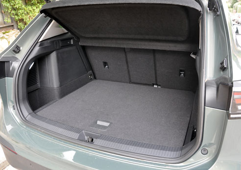 El maletero, con 490 litros de capacidad es un hueco sencillo y sincero. Un rectángulo con dos “extras” a los lados y un espacio bajo el suelo para… para nada. Allí se aloja la betería y los indispensables cables de carga, así que, olvídate de este espacio. El cierre de la tapa es eléctrico y el plano de carga es lo suficientemente cercano al suelo como para izar objetos pesados sin dejarnos las lumbares.