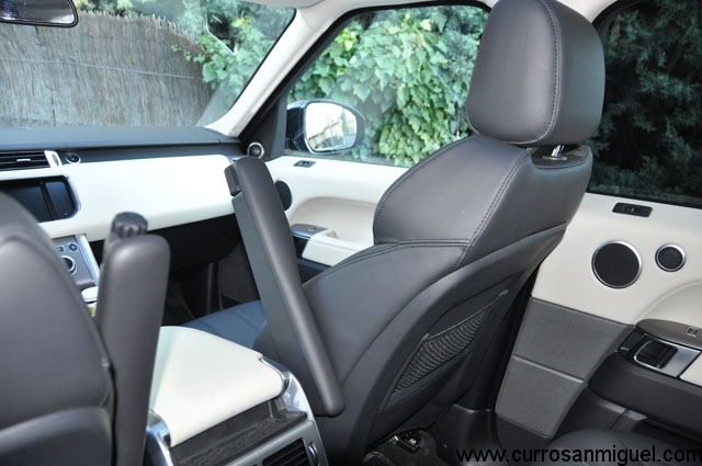 El interior es de coche de gama alta-muy alta. Hay cuero por doquier, unos fantásticos acabados y un porrón de opciones de tapicería y guarnecidos para dejar tu Range Sport a tu gusto. Las butacas delanteras son bastante grandes y cómodas. Contemplan regulación eléctrica, pero para que sean calefactables, has de pagar un extra.