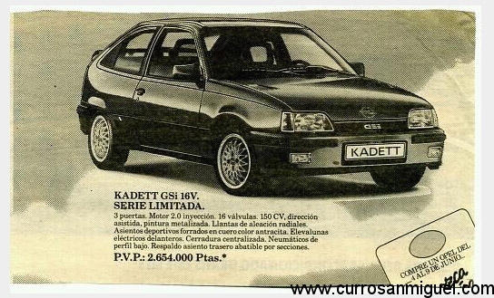 Era un buen compacto al uso con una amplia gama de motores diesel y gasolina que tuvo mucho más predicamento en nuestro país que el Kadett anterior, que pasó más o menos desapercibido.